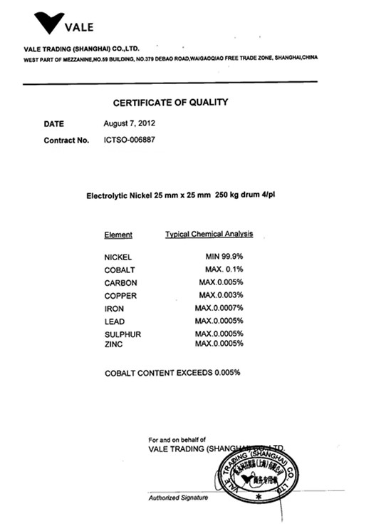 含 量:鎳含量99.99%以上