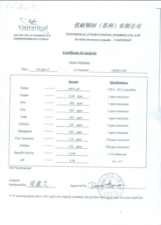 品 牌:美國(guó)優(yōu)耐氨基磺酸鎳